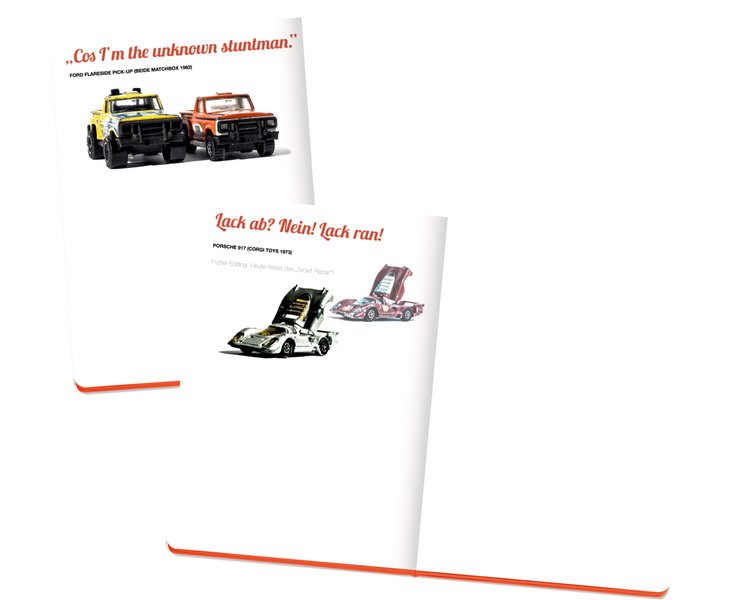 Broschur mit Hochprägung, abgerundete Ecken, farbiger Schnitt