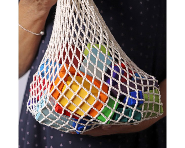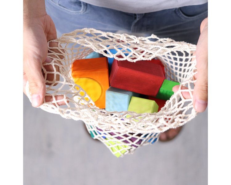 Vom Einfachen bis zum Anspruchsvollen Bauen, mit diesen Bauklötzen wird eine ganze Kindheit lang gespielt! Durch die weiche Oberfläche gelingen schon den Kleinsten erste Stapelversuche. Und mit dem Baumwoll-Netz ist schnell alles aufgeräumt. In einem Bild kombiniert mit dem kleinen Glitzermandala (Art.Nr. 43082) und unseren Zwergen (22000/22001). 30 Klassische Bauklötze in geometrischen Formen im Netz.