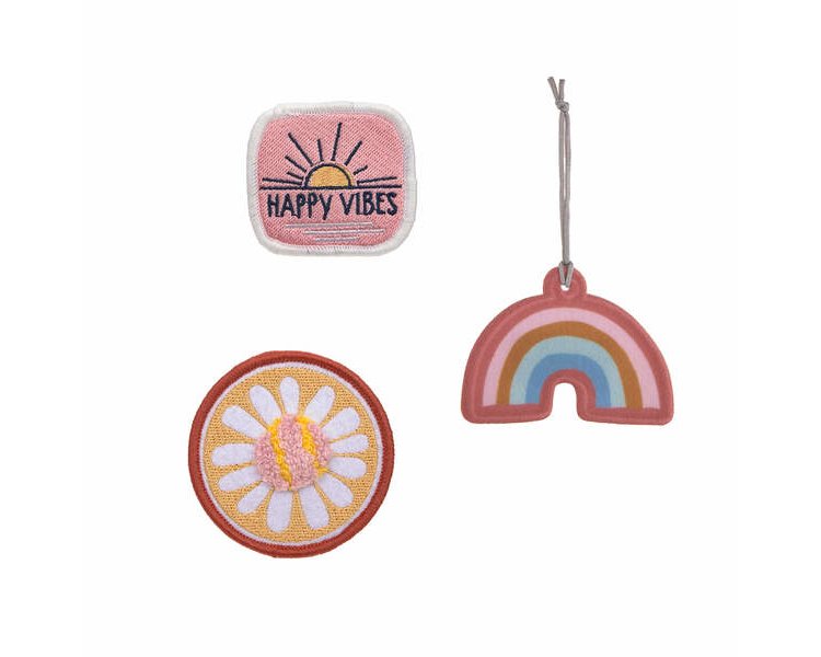 Die fröhlichen Sets bestehen jeweils aus einem Anhänger und zwei Patches und sind in unterschiedlichen Designs für kleine Naturliebhaber, Sportsfreunde und Tagträumer erhältlich. Die Patches lassen sich kinderleicht durch eine Schlaufe mit Druckknopf befestigen und auch der Anhänger findet ganz individuell seinen Platz.