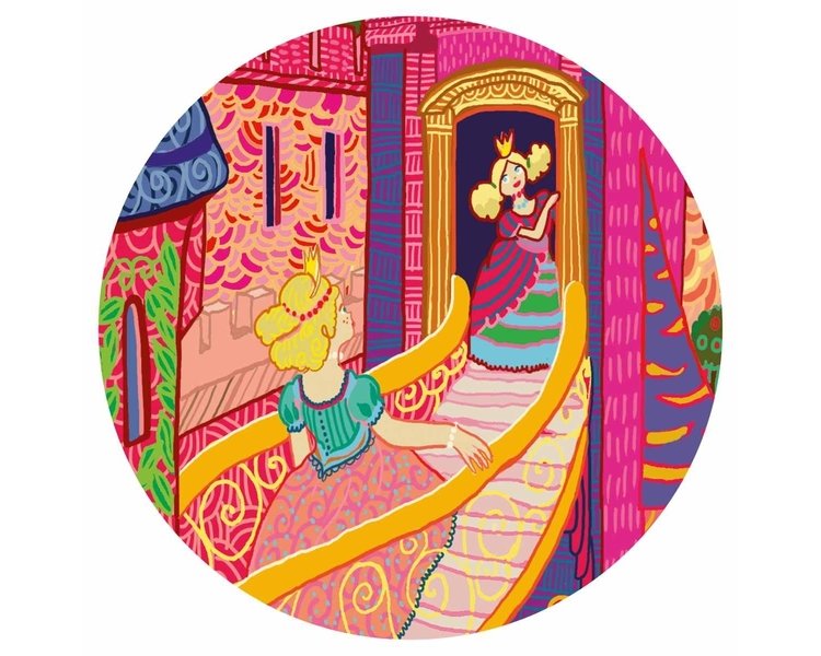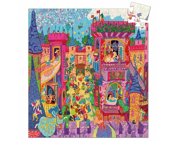 Willkommen im Märchenland. Ein schönes Puzzle mit 54 Teilen in einer eleganten Box in Form eines Märchenschlosses.