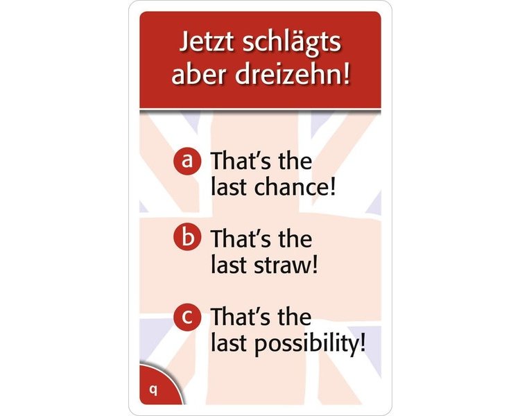 - War die Lösung richtig, müssen die Spieler die korrekte englische Redewendung bzw. die korrekten englischen Begriffe erraten.