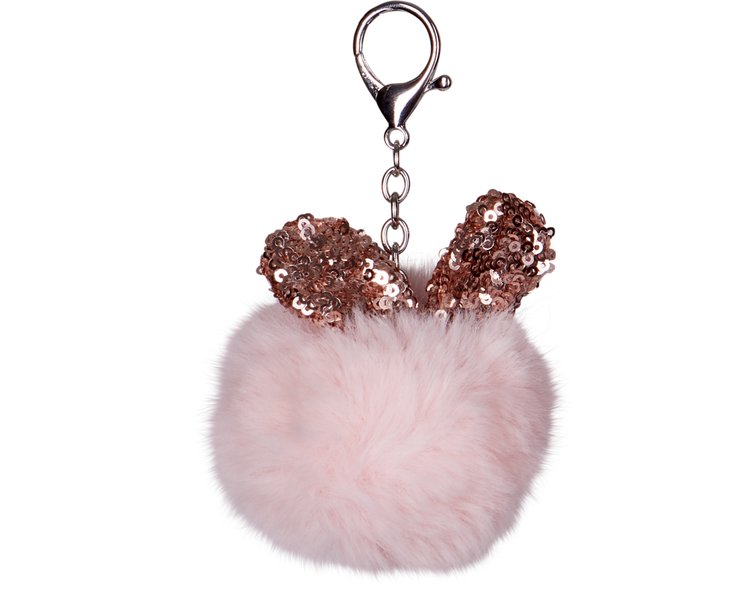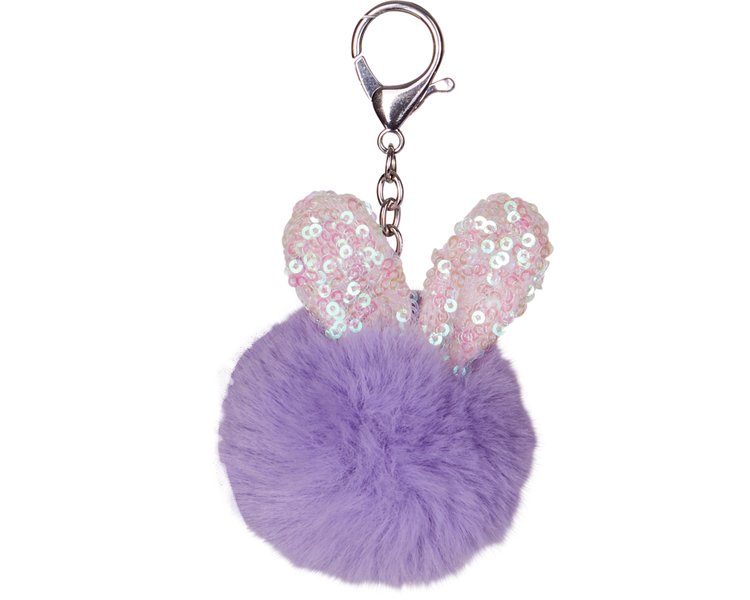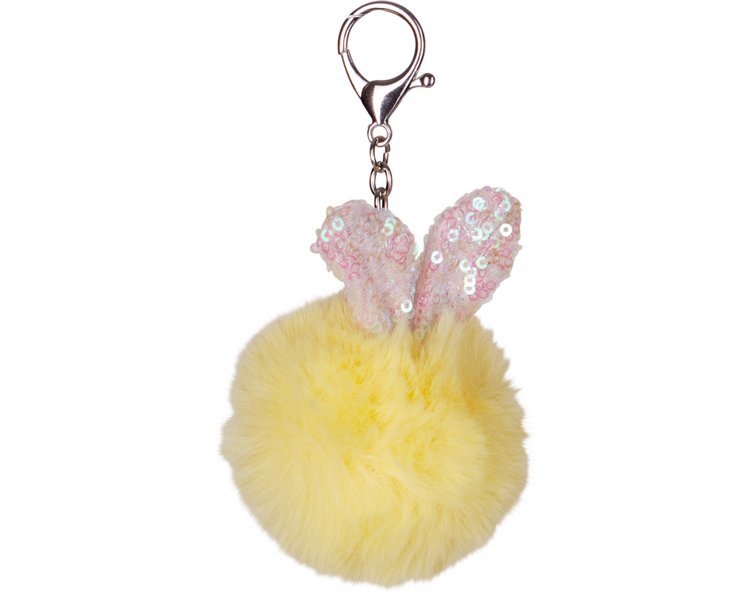Lustiger Puschel-Anhänger in vier verschiedenen Farben mit Karabiner und kleinen Glitzeröhrchen.
