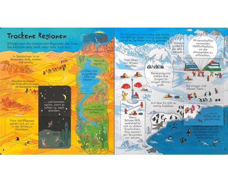 Woraus besteht die Erde? Wer lebt im Regenwald? Was passiert auf dem Weg eines Flusses zum Meer? Unter 80 Klappen verbergen sich kindgerechte Antworten auf diese und viele weitere Fragen.