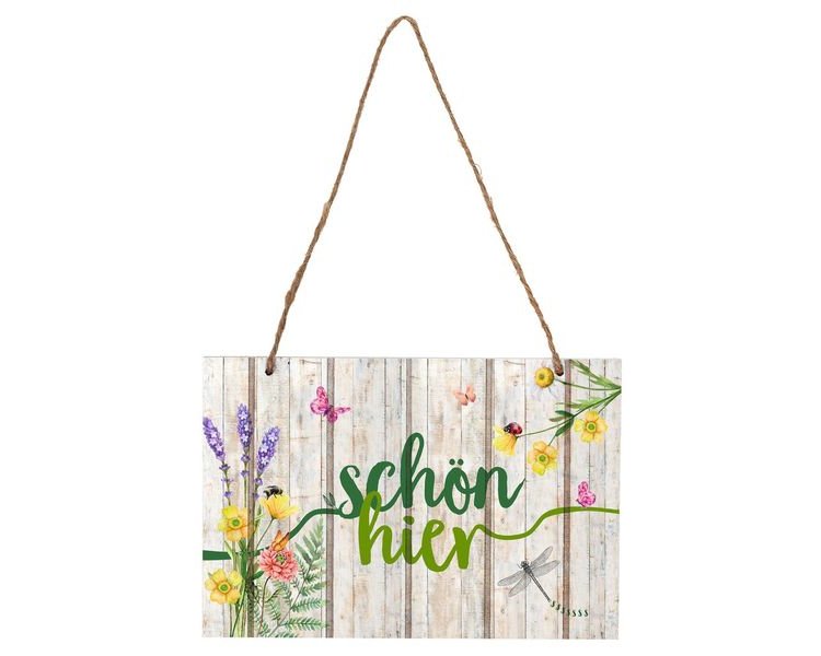 Das Holz-Schild lässt sich dank der praktischen Kordel problemlos am Gartenzaun oder dem Lieblingsort im heimischen Garten befestigen. Die Schilder werden geschmückt von bunten Blumen, Sträuchern und Insekten und einem passenden Schriftzug, der Lust auf schöne Stunden an der frischen Luft macht und Ihrer Liebe zur Natur Ausdruck verleiht. Eine tolle Deko für Garten, Balkon oder Terrasse und ein schönes Geschenk für Hobbygärtner*innen!