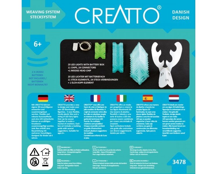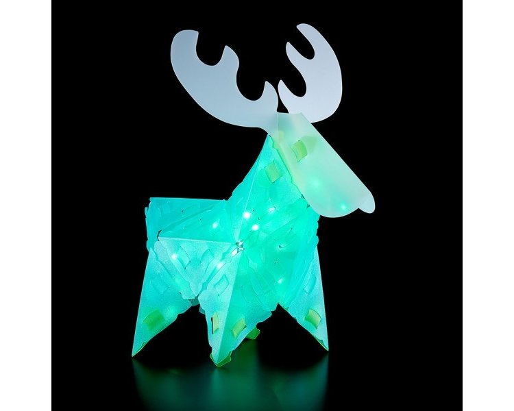 3D-Elch als Deko-Lampe. 3D-Verfahren spielen eine zunehmend größere Rolle in allen Bereichen des Lebens. Jetzt erobern sie auch das Kinderzimmer! Erste Gehversuche im dreidimensionalen Bauen unternehmen Kinder ab 6 Jahren mit dem Set „Elch“ von CREATTO. Mit den flexiblen Steck- und Verbindungsteilen aus robustem Kunststoff ist eine Menge möglich! Ob unterschiedliche Tiere, ein Schmuckbaum oder völlig freie Entwürfe – hier probieren Kinder ihre eigenen Ideen aus. Zum Abschluss des Projekts wird die LED-Lichterkette im Modell befestigt und kann nach Belieben aufgehängt werden. So werden Elch & Co. zu einem genialen Deko-Hit im Kinderzimmer!