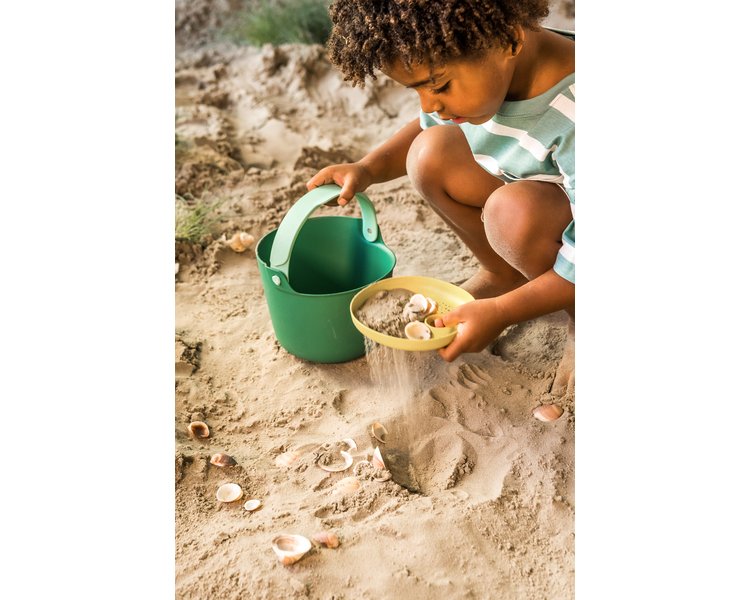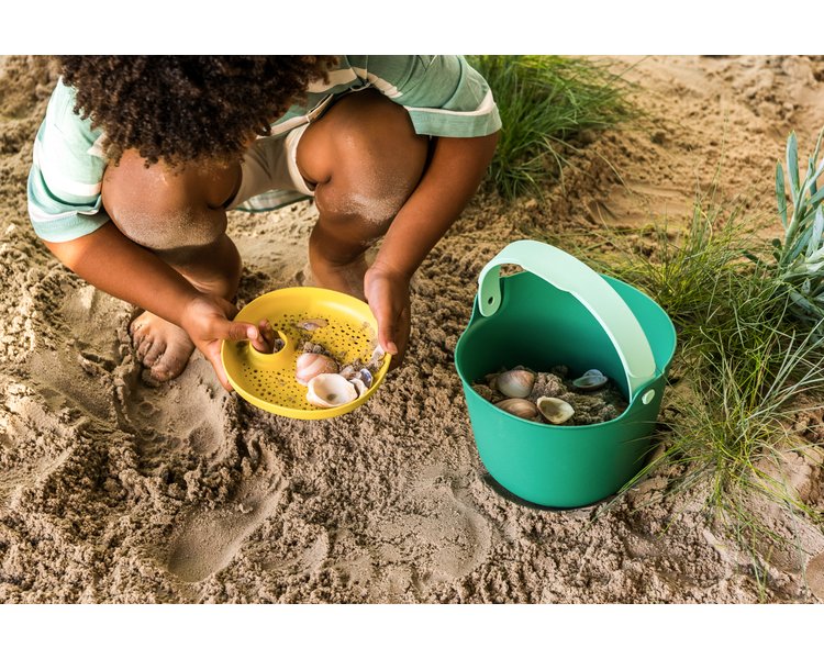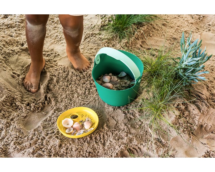 Nach Ballo, dem auslaufsicheren Eimer, bringt Quut einen neuen Eimer in modernem Design auf den Markt. Bucki garantiert stundenlangen Spielspaß! Verwenden Sie den Eimer und das passende Sieb zum Sammeln, Waschen und Transportieren von Muscheln und anderen kleinen Schätzen. Du baust gerne Sandburgen? Nun, dann ist Buck das perfekte Werkzeug, da es eine praktische Form und einen klickbaren Griff hat. Auch für alle, die gerne Blätter, Zweige, Blümchen und Co. sammeln, ist Bucki der perfekte Begleiter! Nimmst du es mit auf dein nächstes Abenteuer?