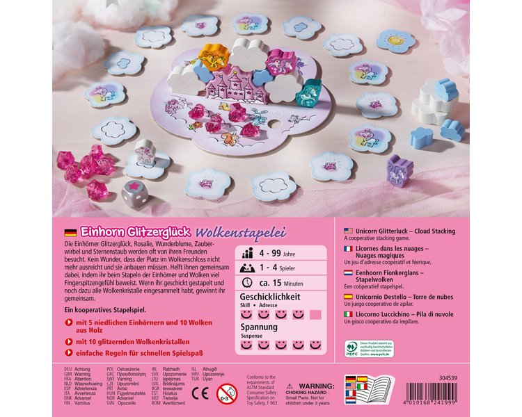Einhorn Glitzerglück – Wolkenstapelei von HABA ist ein kooperatives Stapelspiel für Kinder ab 4 Jahren
