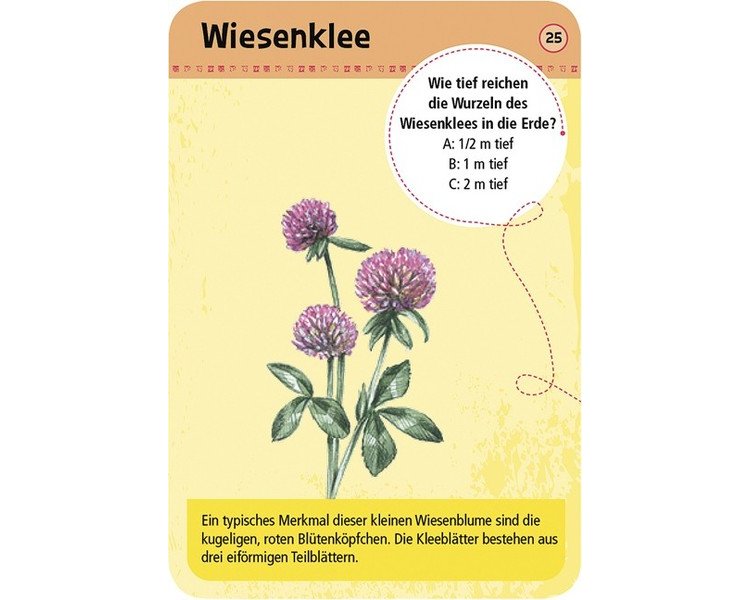 Viele Kinder (und Erwachsene!) kennen heute nicht mehr die Namen der Blumen, die uns umgeben. Diese wunderschön gestaltete Schachtel mit je 50 Karten und einem ausführlichen Leporello können da Abhilfe schaffen! Auch für Mama und Papa nützliche Begleiter auf dem Spaziergang, um sich auf die Frage "Was ist das für eine Blume?" keine Blöße mehr geben zu müssen!