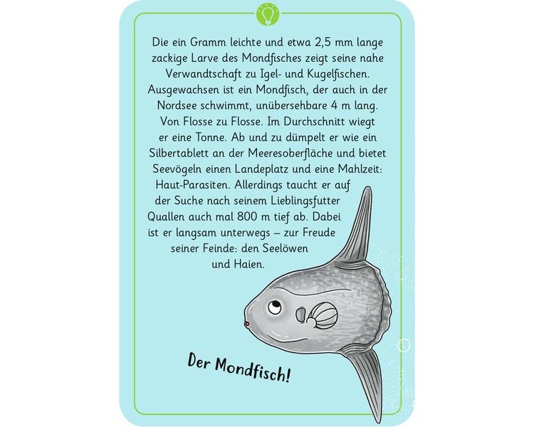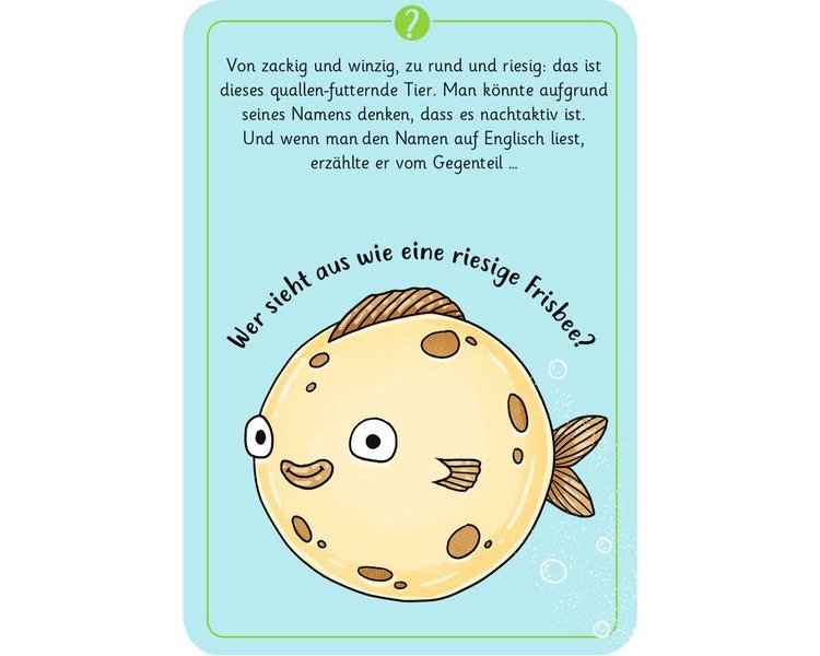Wer schwamm schon im Meer, bevor es einen T-Rex gab? Wer boxt unter Wasser? Und wer schwebt mit Ohrenflossen? Diese und viele weitere spannende Fragen werden in den 50 wundersamen Tierrätseln rund um Haie, Fische und Seepferdchen beantwortet. Echte Meerestier-Freund*innen können hier ihr Wissen testen und noch einiges dazulernen!