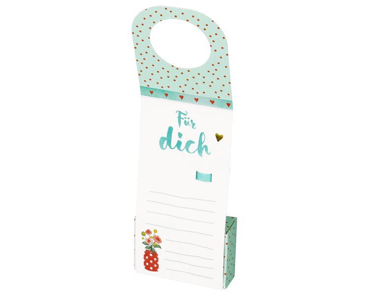Ein absolutes Muss: Dieser Anhänger macht jede Flasche zum perfekten Geschenk. Hier finden Blumen, Grüße und Geldgeschenke ihren Platz.