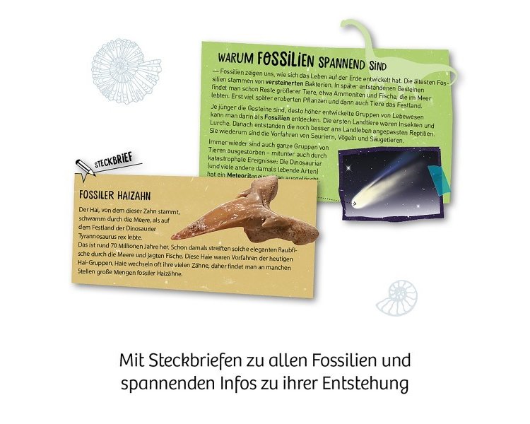 Die farbige Anleitung erklärt die beste Technik beim Ausgraben und verrät Wissenswertes über Fossilien, Versteinerungen und die Arbeiten eines Urzeit-Forschers.