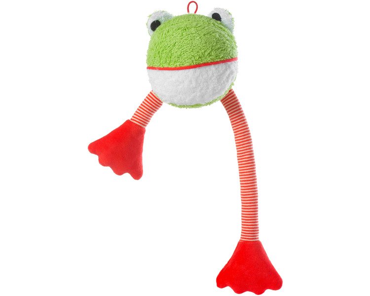 Für kleine Krabbelkinder zum aktiven Spielen bestens geeignet, der Ball in Froschdesign. Er lädt Ihr Kind zum aktiven Greifen, Drehen und Ziehen ein und fördert so die motorischen Fähigkeiten. In den Füßen eingearbeitet sind eine Rassel und ein Quietschie.
