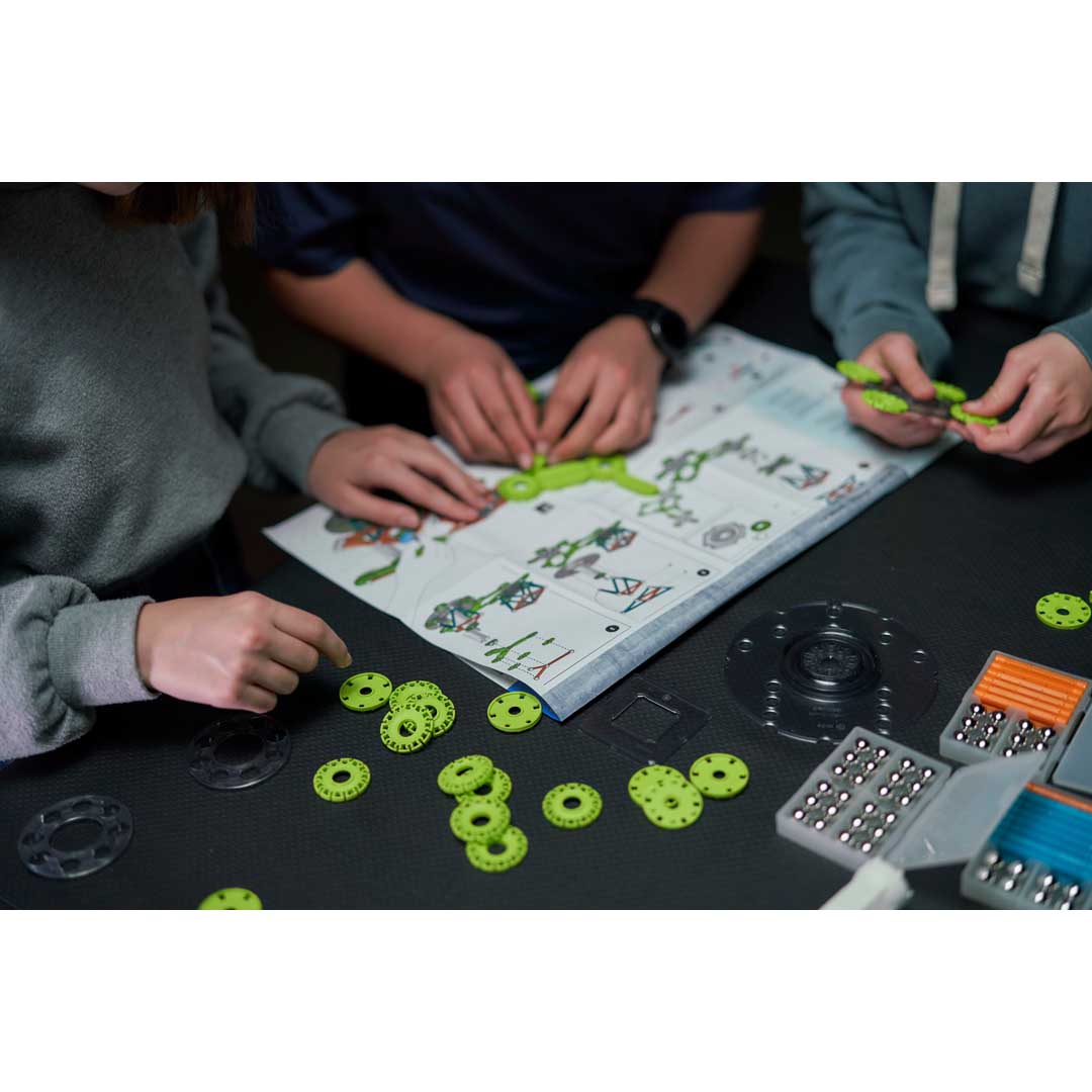 Geomag Mechanics kombiniert die klassischen Magnetstäbe und Stahlkugeln mit mechanischen Bauteilen und erweitert die Spielmöglichkeiten