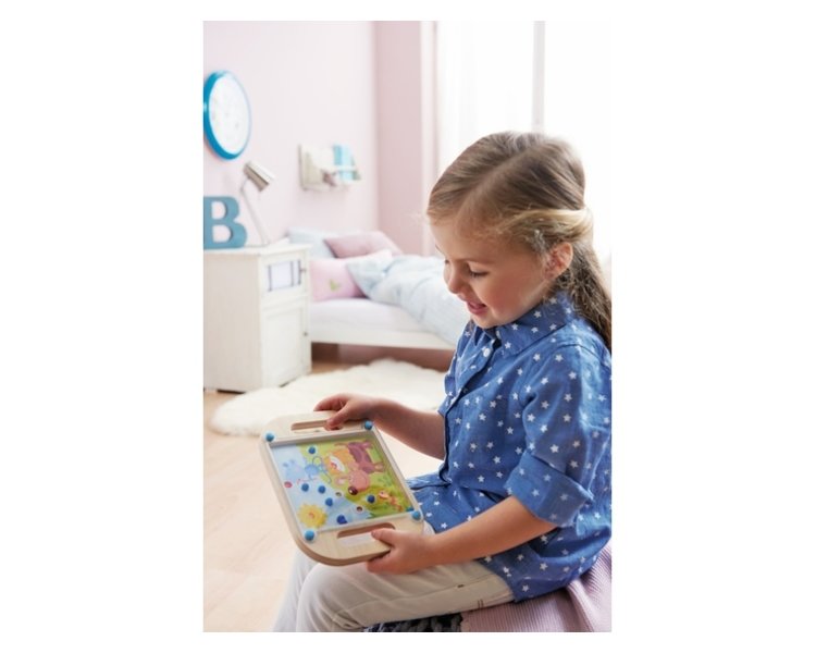 Die Tiere stapeln sich zu einer lustigen Pyramide! Eine ganz schön wackelige Angelegenheit – vor allem für die kleine Maus. Wer kann ihr beim Seifenblasen-Machen helfen und die Kugeln in die Vertiefungen kullern lassen? Dafür sind ganz schön viel Konzentration, Geschicklichkeit und Geduld gefragt.