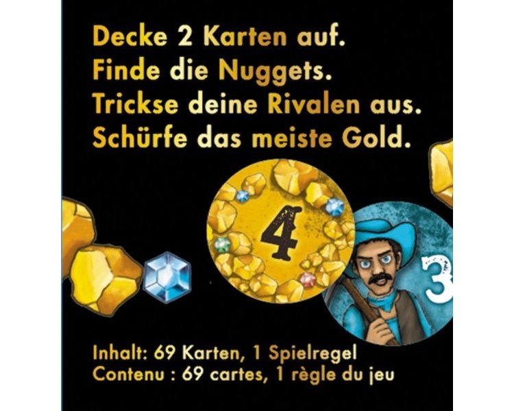 Das Gold ruft! In diesem pfiffigen Memospiel versucht ihr als Goldgräber das meiste Gold aus der Mine zu holen. Um auf dem Weg zum Ruhm den einen oder anderen lästigen Rivalen auszutricksen, helfen ein glückliches Händchen, ein gutes Gedächtnis und taktisches Gespür.