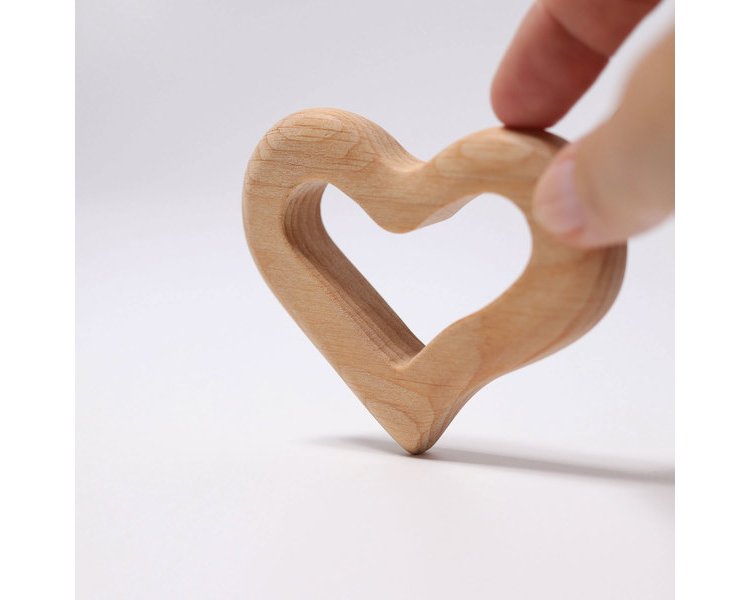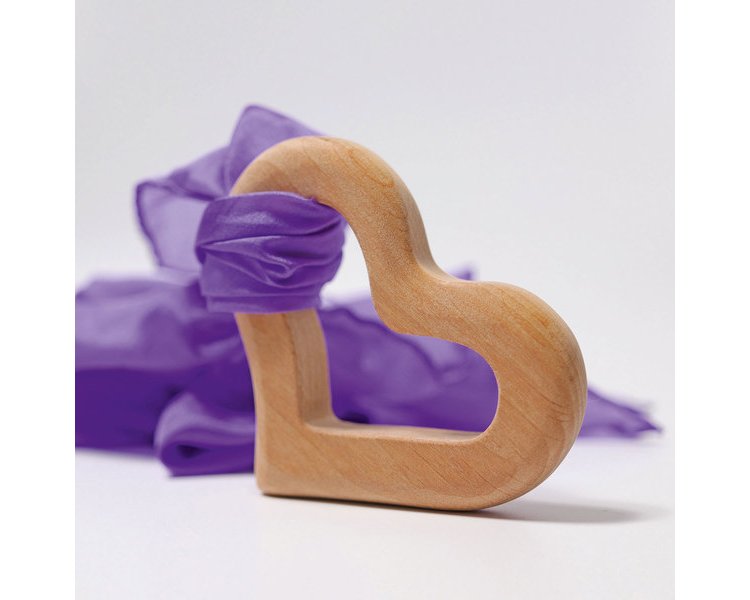 Ein die Sinne schmeichelnder Greifling in Herzform. Das verwendete Erlenholz gibt unseren Rasseln und Greiflingen seine besondere und bei jedem Stück einzigartige Struktur. Ein natürliches Pflanzenöl schützt das Holz und bringt seine lebendige Struktur zur vollen Entfaltung. Dieser Greifling eignet sich auch um ein Seidentuch daran zu knoten, für die Kleinen einfach um die Haptik zu erkunden, oder für die Großen um das Tuch zu Schwingen und Fliegen zu lassen.