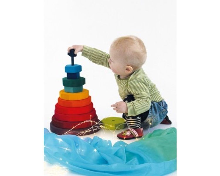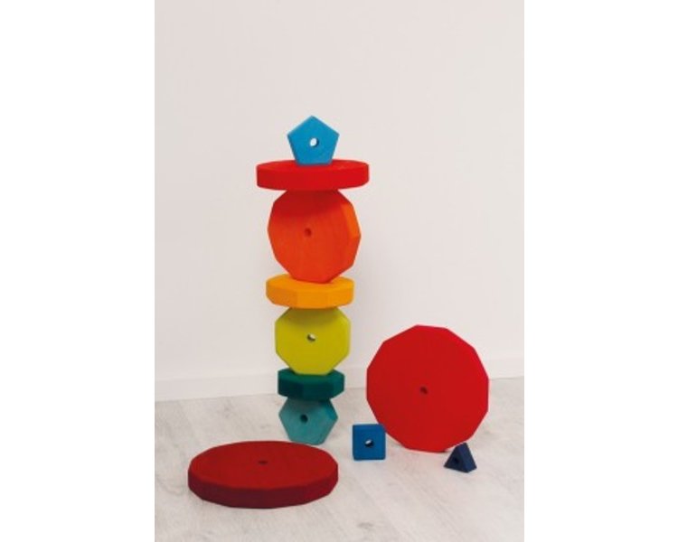 Vom 3-Eck bis zum 13-Eck: Mit dem großen geometrischen Scheibenturm können Farben, Formen und Größen sortiert, kann gestapelt und gebaut werden. Schult die motorischen Fähigkeiten der Kleinen.
