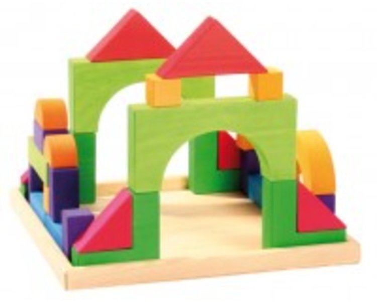 Die einfachen geometrischen Formen sind wunderbar schon für ganz kleine Kinder. Ob Türme oder Bauwerke wie Burgen, diese Formen lassen Raum für die Phantasie der Kinder und schulen ihre motorischen Fähigkeiten sowie das räumliche Denken. Dieser Baukasten ergänzt sich wunderbar mit unseren Erweiterungsbaukasten (10201).