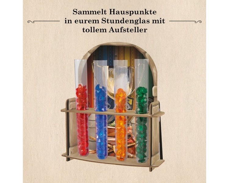 Gryffindor™, Slytherin™, Ravenclaw™ oder Hufflepuff™: welches Haus wird diesen Wettstreit gewinnen? In Hogwarts™ , der berühmten Schule für Hexerei und Zauberei findet der nervenaufreibende Wettkampf um den Hauspokal statt. 2-4-mutige und clevere Hexen und Zauberer ab 11 Jahren nehmen die Herausforderung in diesem Brettspiel an. Wem gelingt es, mit Verstand und Zauberkraft die Aufgaben zu lösen, die begehrten Edelstein-Hauspunkte zu sammeln und den Pokal zu sichern? Harry Potter™ und seine Freunde haben viel zu tun! Ein tolles 3-D-Stundenglas zeigt, wie viele Punkte sie schon gesammelt haben. Schnell, der Wettstreit um den Hauspokal hat begonnen! Ein Muss für Harry-Potter™-Fans.