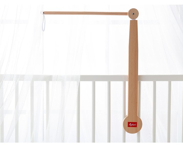 Hochwertiges Holzrack für sigikid Mobiles. Zur Befestigung an Kinderbett oder Laufstall Drehknopf aufschrauben. Arm in der Höhe und seitlich schwenkbar. Mobiles und Spieluhr separat erhältlich.
