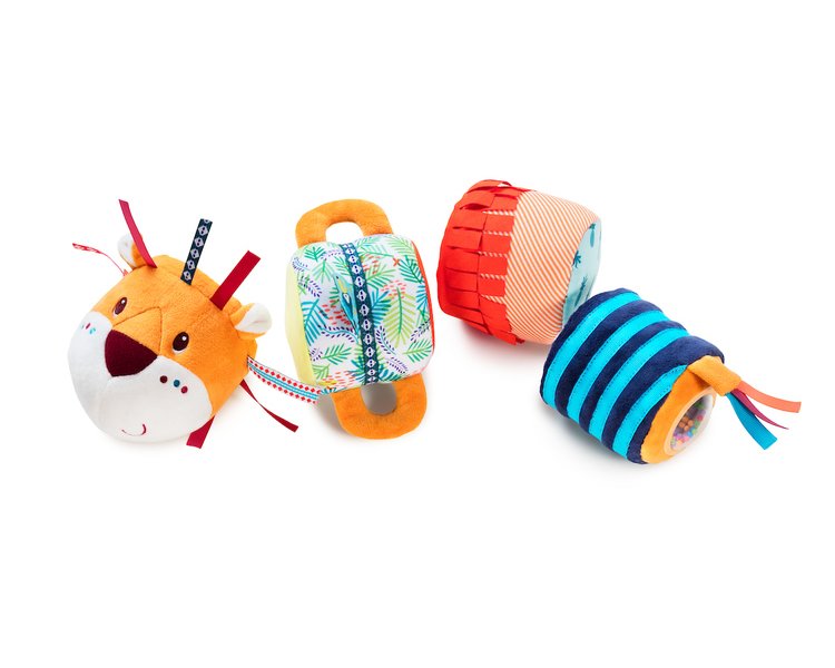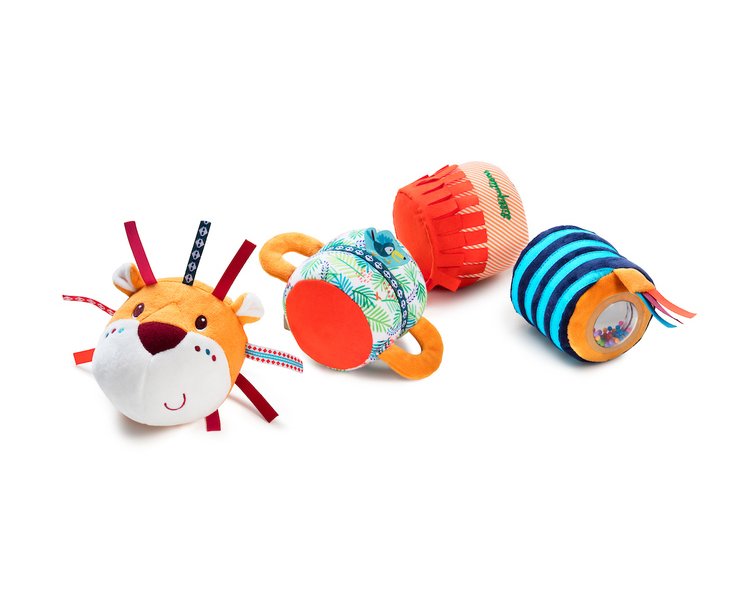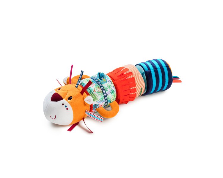 Der Löwe ist los! Jack hilft Ihrem Kind, sein Gehör und seine Feinmotorik zu schulen. Dank der Klettverschlüsse kann es die einzelnen Glieder schnell auseinandernehmen und wieder zu einer Rolle zusammensetzen. Jedes Teil macht ein anderes Geräusch und ist mit weichem, farbigem Stoff überzogen. Das sind 4 Rasseln in einer – die perfekte Unterhaltung für Ihr Baby!