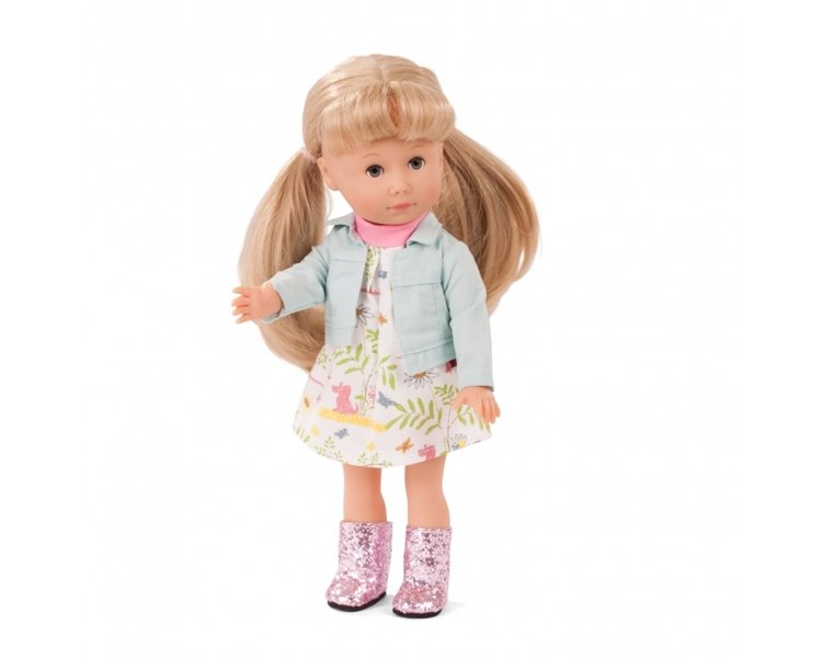 Ein süßes Sommerset für deine Just-Like-Me Puppe. Im Kleidchen mit den Tiermotiven wird sich deine kleine Tierliebhaberin sehr gerne zeigen, dazu Glitzerstiefel und sollte es kühl werden, dann rasch die coole Jacke anziehen. Das Kleid hat einen schicken Stehkragen und ist vorne in Falte gelegt, die türkisfarbene Jacke hat durch die Ziernähte einen lässigen Look, aber erst die Stiefel verleihen den richtigen Look.