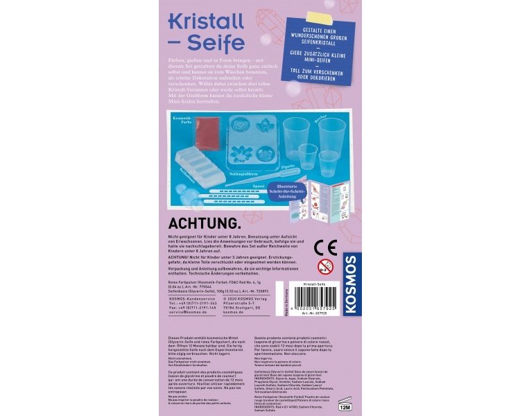 Das Experimentier-Set Kristall-Seife von KOSMOS bietet Kindern zwischen 8 und 12 Jahren eine gelungene Mischung aus Spaß, Kreativität und nützlichem Ergebnis. Ein tolles Erlebnis allein oder zu zweit.