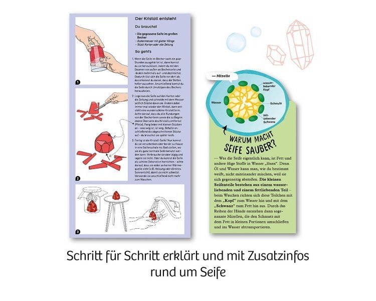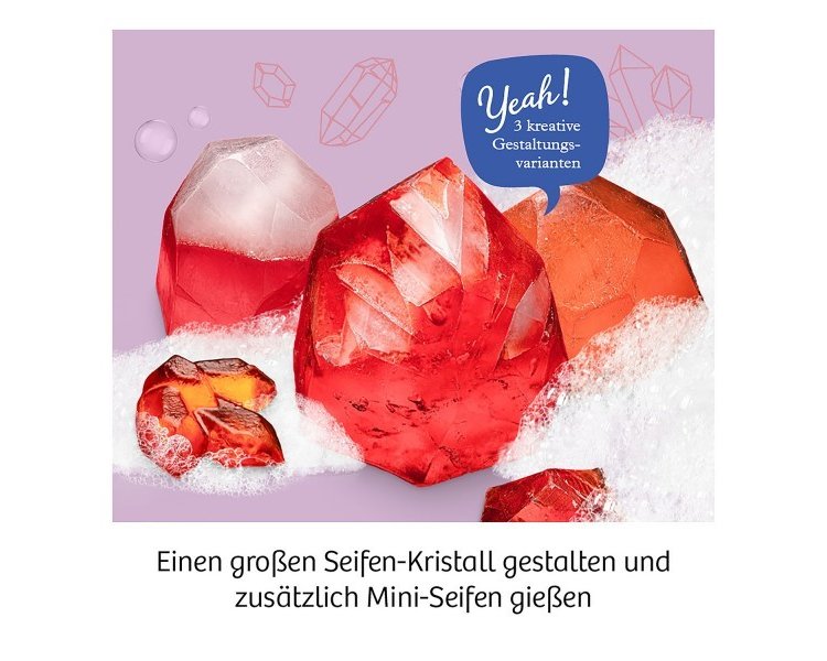 Hände waschen ist wichtig und ab jetzt macht es richtig Spaß! Mit dem Experimentierset Kristall-Seife können Kinder ihre eigene, wunderschöne Seife herstellen. Das ist nicht nur eine tolle Dekoration für das Bad, sondern kann auch zum besonderen „handmade“-Geschenk für Freunde und Familie werden.