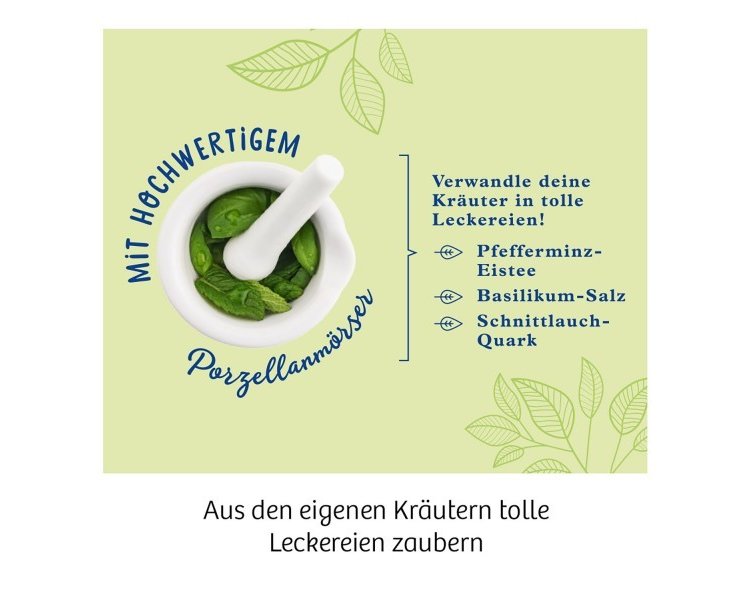 Hier beobachten Kinder nicht nur Pflanzen beim Wachsen, sondern bereiten aus ihren eigenen Kräutern tolle Leckereien zu – der hochwertigen Porzellan-Mörser macht es möglich!