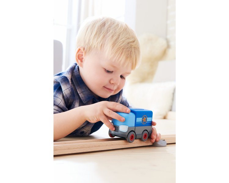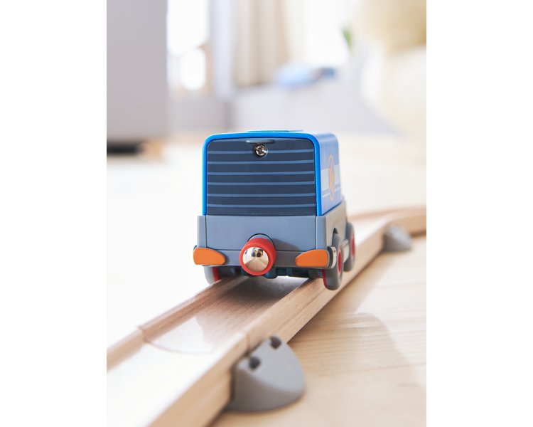 Der blaue Batterie-LKW bringt noch mehr Fahrspaß in die aufregende Kullerbü-Spielwelt von HABA. Dank raffiniertem Batterieantrieb fährt das Kullerbü-Fahrzeug von selbst durch die Bahnen. Besonders praktisch: Um die Batterie zu schonen, stoppt das Fahrzeug automatisch nach einer Minute. Wer mag, kann den Batterie-LKW natürlich auch manuell bedienen, zum Beispiel fürs freie Spielen am Boden. Die Kullerbü-Fahrzeuge mit Batterieantrieb sorgen für noch mehr Tempo auf den Bahnen und begeistern junge Autofans ab 2 Jahren. Sie sorgen für viel Abwechslung und schulen ganz nebenbei feinmotorische Fähigkeiten.