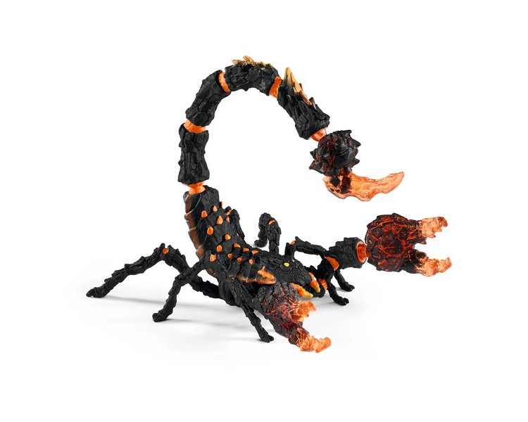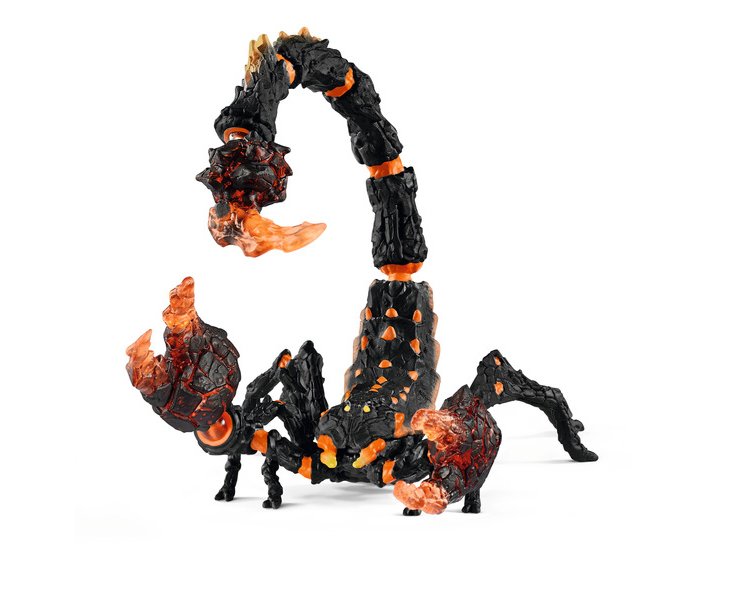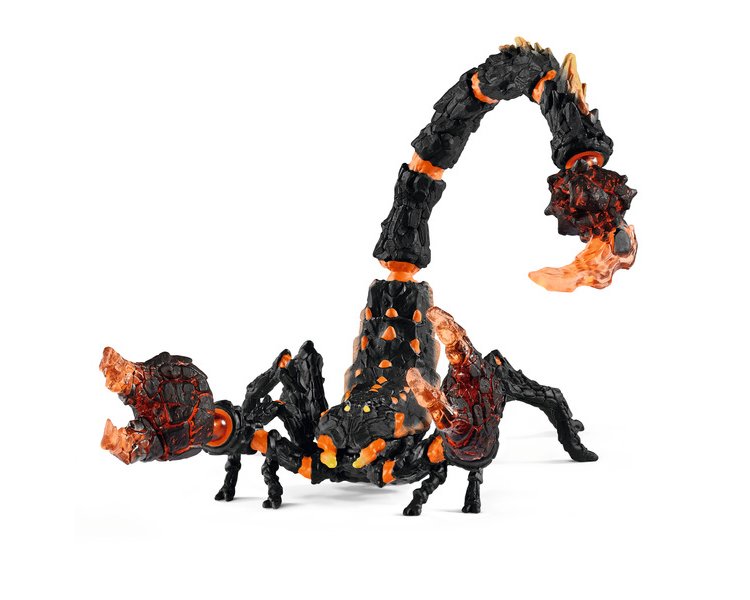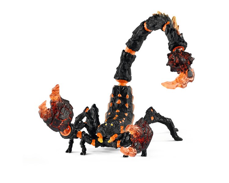 Der Lavaskorpion lauert gut versteckt in den zerklüfteten Felsen der Lava Welt auf seine Opfer. Kommt ihm ein Gegner zu nah, greift er mit seinen glühenden, ultrastarken Greifzangen zu. Wer dann nicht stillhält, bekommt seinen glühenden Stachel zu spüren. Im Gefecht gegen mehrere Angreifer setzt er seinen Stachelschwanz ein, den er wie eine furchtbare Keule in alle Richtungen schwingen kann.