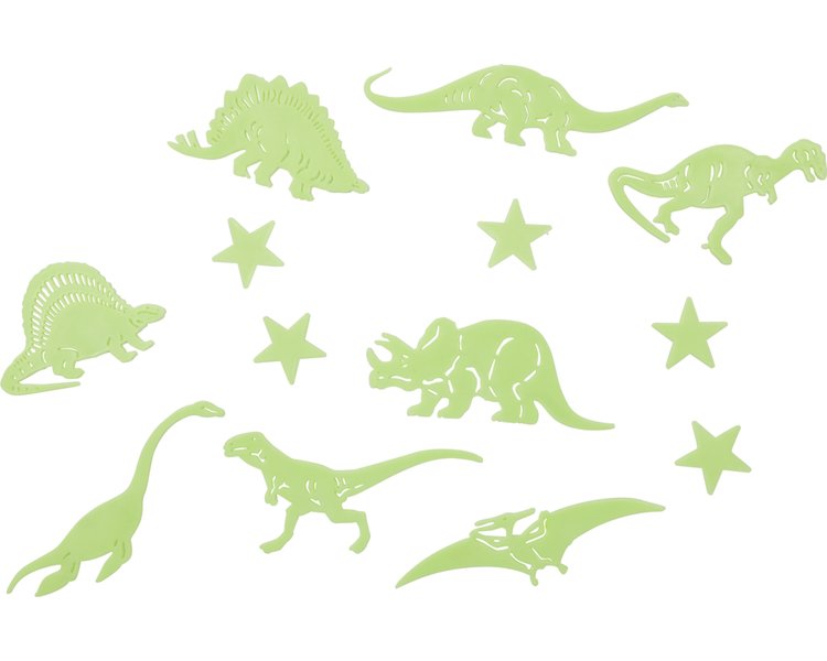 Diese Dinosaurier-Figuren sind ein tolles Geschenk für jeden Dino-Fan. Sie können neben dem Bett oder an einer anderen Stelle im Zimmer angebracht werden und leuchten im Dunkeln, wenn sie vorher mit Licht gefüttert wurden. Im Set enthalten: acht verschiedene Dinosaurier und fünf Sterne, außerdem 16 Klebepunkte.