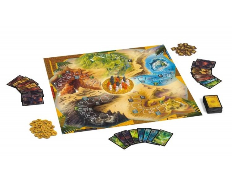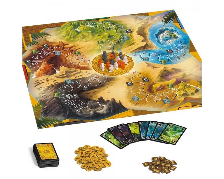 Inhalt: 1 Spielplan, 110 Expeditionskarten, 25 Ereignisplättchen, 20 Spielfiguren, 64 Punktechips, 27 Artefaktplättchen, 1 Anleitung