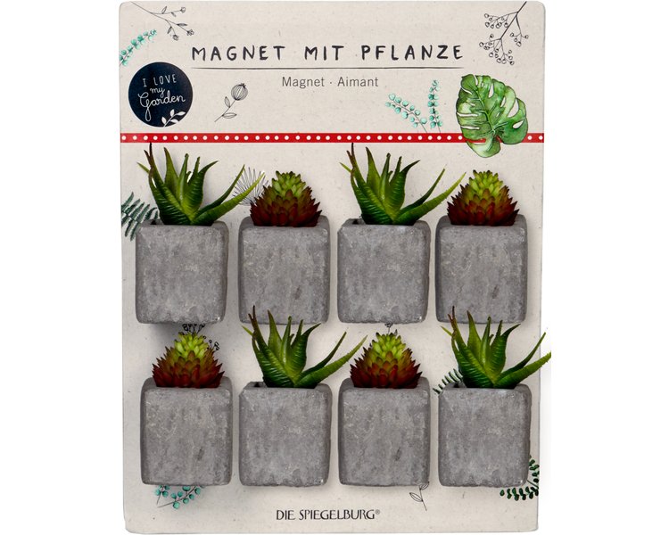 Dekorativ am Kühlschrank oder der Magnettafel: Die künstliche Sukkulente in einem kleinem Beton-Topf aus der „I love my Garden“-Kollektion in zwei verschiedenen Varianten entpuppt sich als Magnet.