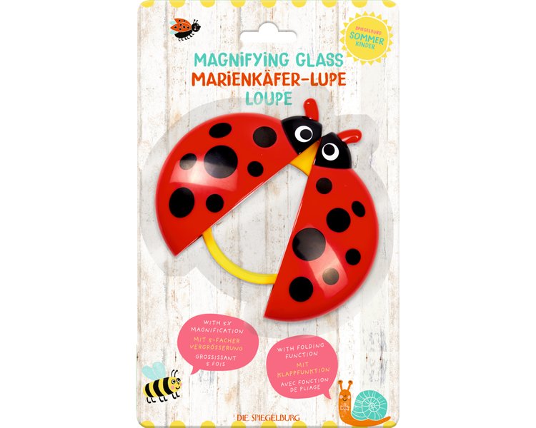 Sommer, Sonne, Spielspaß! Mit dieser Klapplupe in Marienkäferform gehen kleine Forscher auf Entdeckungstour. So lassen sich krabbelige Insekten aus nächster Nähe beobachten. Mit 5-facher Vergrößerung.