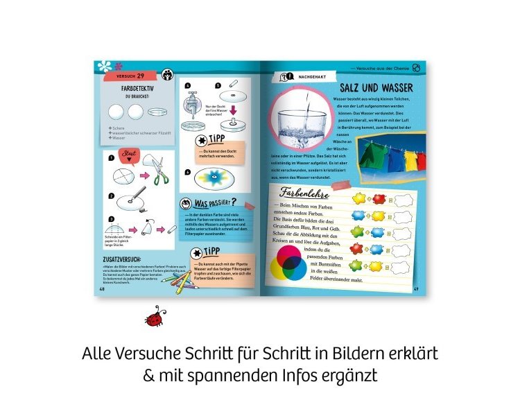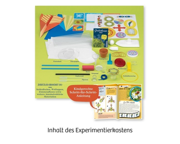 Die vielfältigen Materialien laden zu 29 spannenden Versuchen ein – alle anschaulich und mit altersgerechten Bildern erklärt. So können Kinder auch ohne Lesekenntnisse die Arbeitsschritte nachvollziehen. Forscherspaß und Erfolgserlebnisse garantiert!