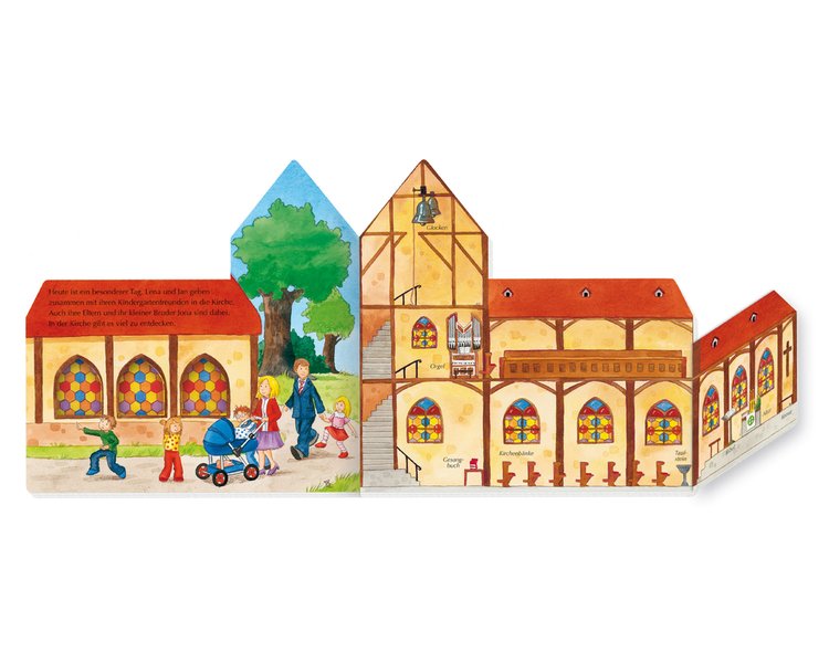 Die großen Glocken läuten ganz schön laut, denn sie wollen den Menschen sagen: „Kommt alle her, wir möchten Gottesdienst feiern!“ Lena und Jan gehen heute zum ersten Mal in die Kirche – mit ihren Eltern und ihren Freunden aus dem Kindergarten. Die beiden sind mächtig aufgeregt, denn von der prächtigen Orgel über die alten Kirchenbänke und den Taufstein bis hin zum Altar gibt es dort viel zu sehen ... Eine spannende Entdeckungsreise durch die Kirche, bei der schon die Kleinsten lernen, was während eines ökumenischen Gottesdienstes geschieht.