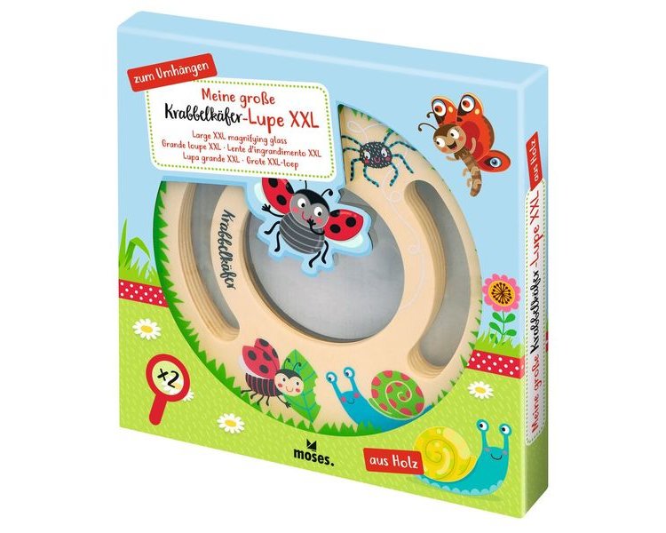 Draußen im Grünen gibt es viel zu entdecken. Und was könnte neugierigen Kleinkindern mehr Spaß machen, als die Vielfalt der Natur ganz genau zu erkunden? Die große Krabbelkäfer-Lupe XXL hilft kleinen Entdecker*innen dabei, alle Details von Blättern, Blumen, Tierchen oder Alltagsgegenständen zu bestaunen. Das niedliche Krabbelkäfer-Design der Lupe macht sofort gute Laune und passt thematisch ideal zur Entdeckungstour in Wald, Wiesen oder dem heimischen Garten.