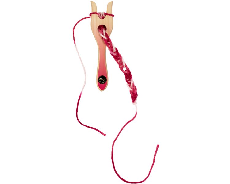 Einen kinderleichten Einstieg in die Welt der Handarbeit bietet die Strickgabel mit mehrfarbigem Garn (15g), aus dem sich wunderschöne Kordeln stricken lassen. Die bebilderte Anleitung zeigt Schritt für Schritt wie es geht. Strickgabel aus Kiefernholz.