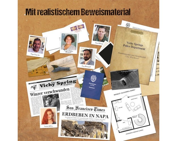 Eine spannende Geschichte bringt die Spieler mitten hinein ins Geschehen. In detektivischer Feinarbeit gehen sie Spuren nach und sichern Beweise. Dafür sichten sie in diesem Detektiv-Spiel Zeitungsausschnitte und Notizbücher, Zeugenaussagen, Fotos von Tatort und Verdächtigen. Passen die Aussagen und das Beweismaterial zusammen? Wer könnte hinter der Tat stecken? Die Spieler schlüpfen in die Rolle des ermittelnden Detektiv-Teams. Dieser Krimi verspricht Spannung pur für den nächsten Spielabend!