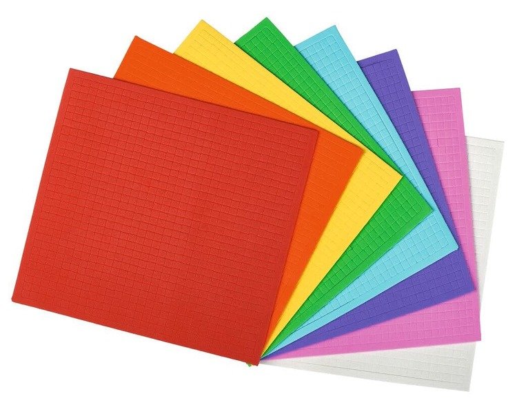 + beim Bekleben der Felder arbeitet man wie ein Computer: Die Bilder entstehen, indem man viele kleine Farbpunkte richtig anordnet.