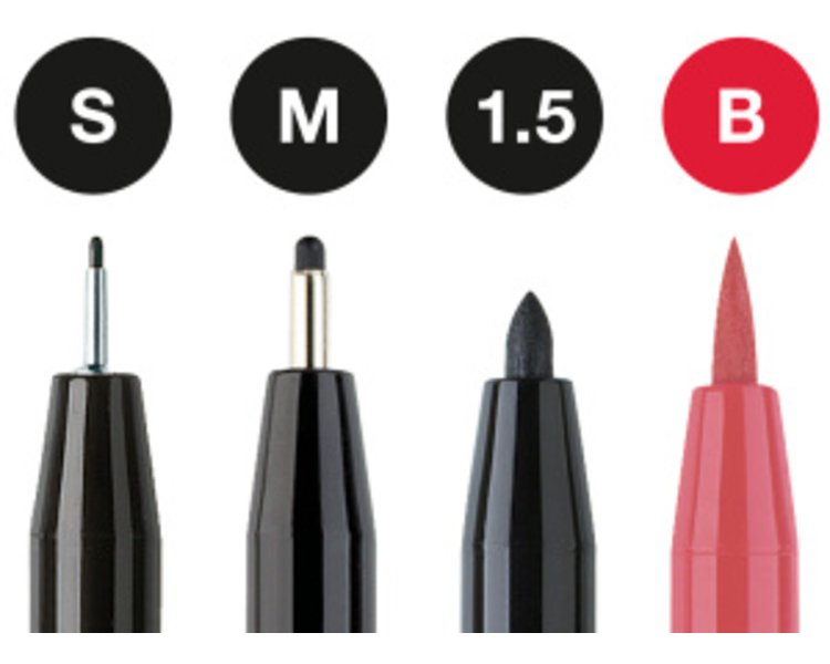 Spitzen: S = 0.3 mm, M = 0.7 mm, Rundspitze 1.5 mm, B = Pinselspitze