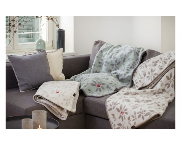 Plaid VELVET "Pflanzen" inkl. Stick hellgrau - FUSS 113257K2
