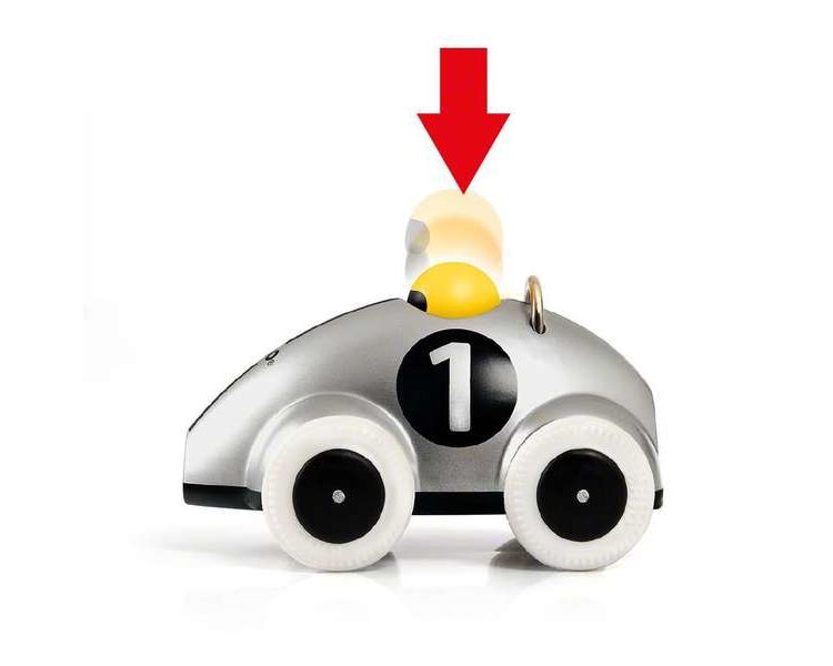 Wer ihn sieht, muss ihn sofort anfassen, fühlen und über den Fußboden schieben. Drücke einfach den Fahrer herunter – und das Auto rast los! Der Push & Go Rennwagen Silber Edition bietet Spaß und Spannung, regt die Aktivität an und fördert die motorischen Fähigkeiten.