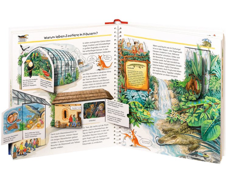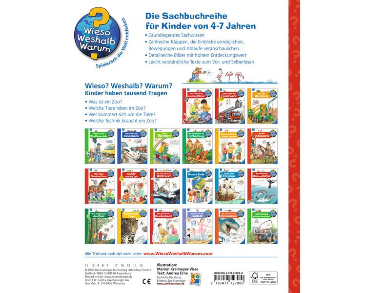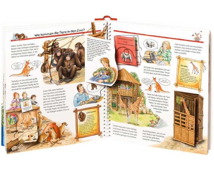 Ein Zoobesuch gehört für jede Familie zum "Pflichtprogramm", denn nur hier lassen sich Löwen, Elefanten, Zebras und all die anderen exotischen Tiere aus nächster Nähe beobachten. Wie ein Zoo-Scout beantwortet dieses Buch Kinderfragen: Wie kommen die Tiere in den Zoo? Ist den Tieren nicht langweilig? Wieso hüpfen die Kängurus nicht weg und was passiert, wenn ein Nashorn krank wird?