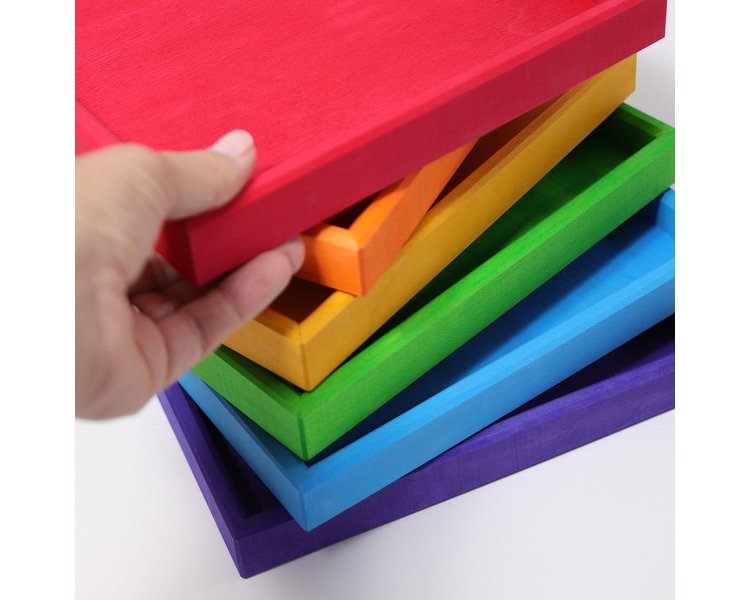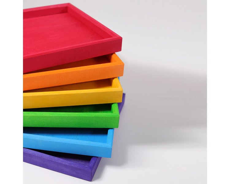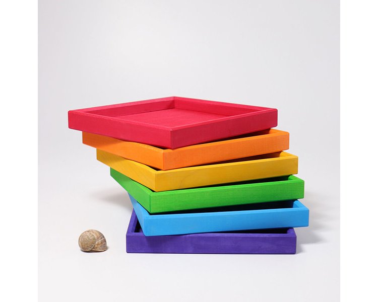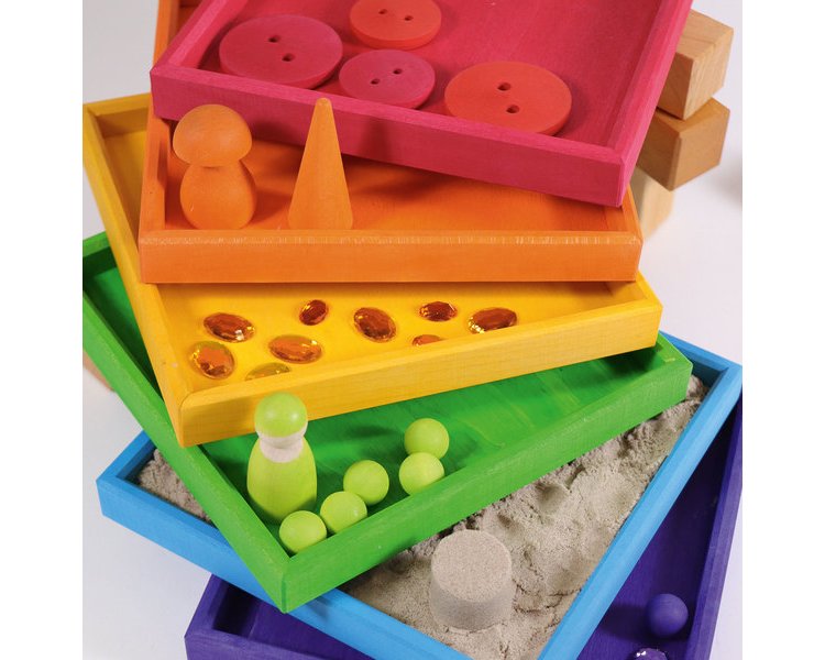 Durch eine vorbereitete Umgebung, wird das Handeln der Kinder übersichtlich geordnet. Ein idealer Rahmen für Sandbilder oder spielen mit Kinetischem Sand. Auch perfekt um in verschiedenen Ebenen zu bauen oder einfach als kontrastreicher Hintergrund für unsere Monochrom Artikel. 6 bunte Kistchen.