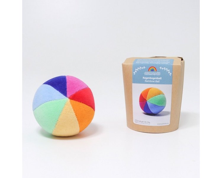 Dieser weiche regenbogenbunte Ball klingelt leise mit seinem Glöckchen und ermutert zum Hinterherkrabbeln.