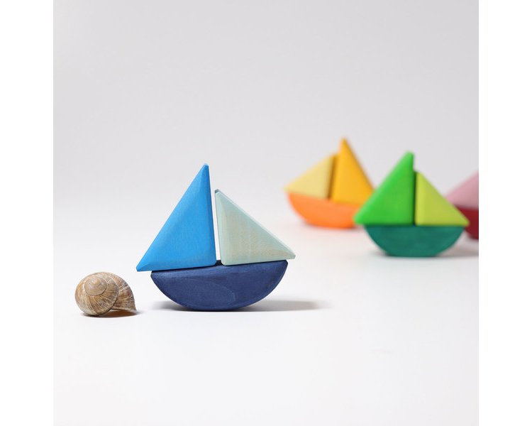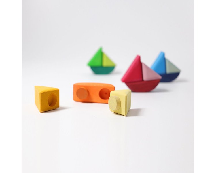 Die Schaukelschiffe sind für Kinder ab einem Jahr zum stecken, Farben neu kombinieren und sortieren, Schiffchen spielen und auch zum bauen. Wunderschön kombinierbar mit der Wasserwelle (Art. Nr. 10720).
