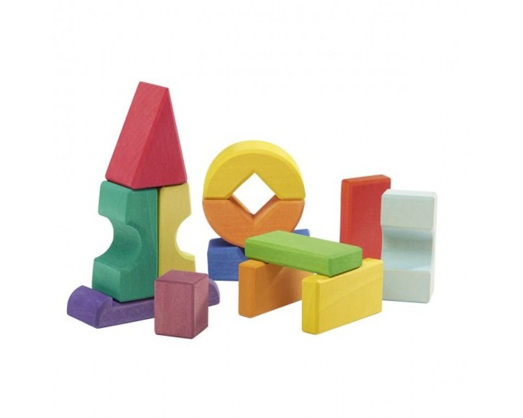 Bunt, kreativ, einzigartig. Die Formen sind aus hochwertigem Lindenholz hergestellt und ergeben eine besondere Haptik durch die gebeizten Oberflächen. Freie Bauweisen in allen möglichen Traumwelten lassen Kinder und Eltern zu individuellen Baumeistern werden.