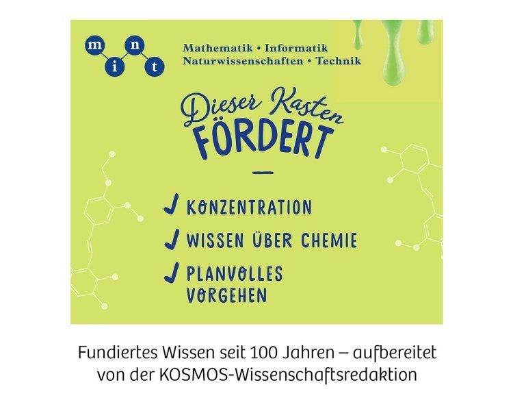 Ausführliche Info-Texte erklären erste chemische Grundbegriffe, und die Anleitung beschreibt die einzelnen Schritte der Experimente anhand einer spannenden Alien-Forschungsmission. Übrigens: Der Experimentierkasten „Schleim-Labor“ ist mit der großen „Big Fun Chemistry“-Station von KOSMOS kombinierbar. Los geht’s mit den schleimigen Experimenten!